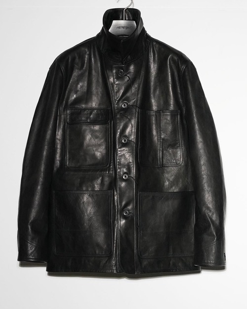 厚みとハリのある質感で、無骨さと重厚感が魅力。タフに着込むことで経年変化を楽しめる、“育てる”レザーとしての醍醐味を味わえます。